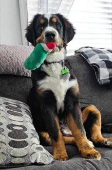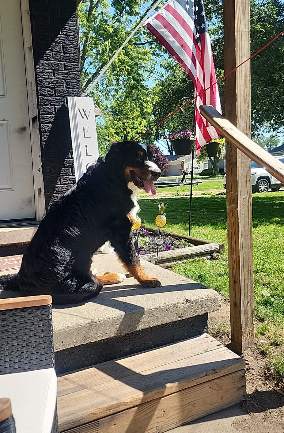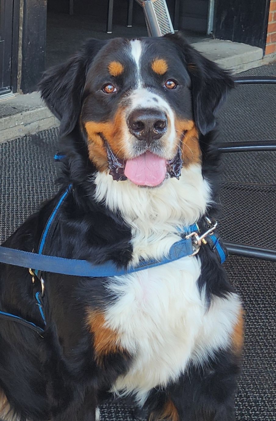 In Harrison township he has been featured in the local magazine and being it’s a smaller town, he is locally known. Neighbors love him and he has other dog friends in the neighborhood. He loves to be outside in the cold weather. He likes to race cars, or chase them down. He weighs about 120 pounds. He is just over two now, and has recently really filled out to be a big guy.