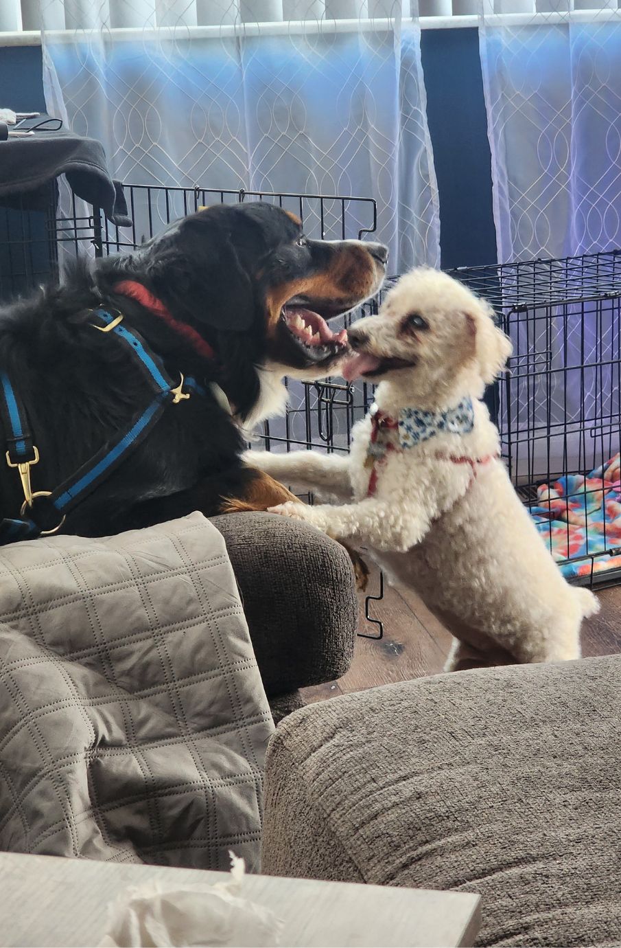His best friend’s name is Digby. Digby is an older guy, about 20 pounds. He is blind and Hubble doesn’t have a clue. They are besties and I will include some pics. We regularly visit with Digby and even watch him sometimes when his pet parent is traveling.