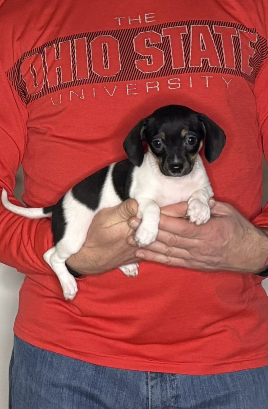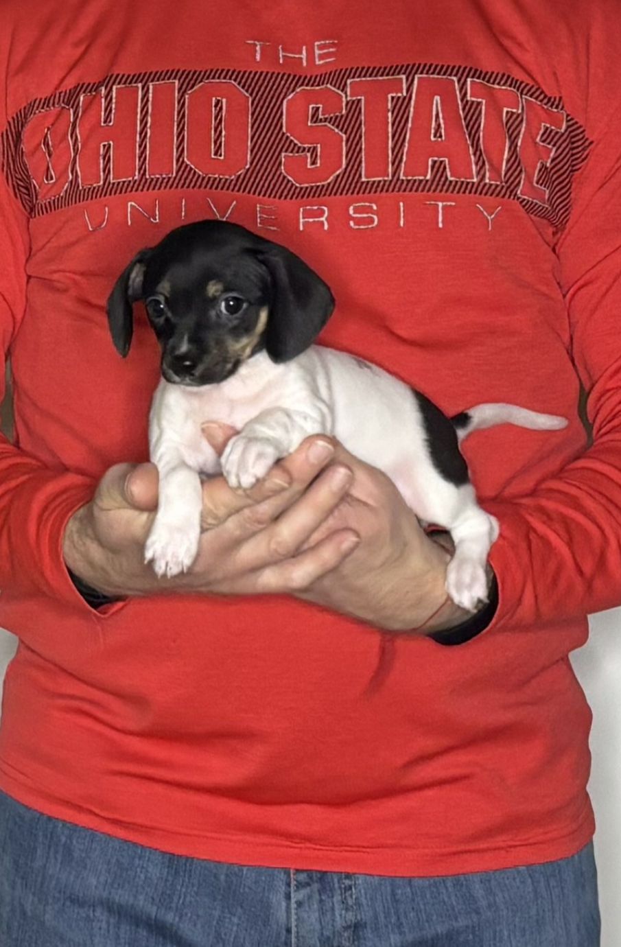 Hi, my name is Abby. I am an 8-week-old female Dachshund and Toy Fox Terrier Mix. My mom is a Toy Fox Terrier and my dad is a Dachshund. I will weigh between 17 to 25 lbs Grown. I am up to date on my shots and ready to go home. We require that the new family has the dog spayed/neutered by one year of age unless their Vet suggests differently. PLEASE READ OUR FAQ PAGE before filling out the application. We want you to know about us just as much as we want to know you! To fill out an application, tap the “I’m Interested” button below my description or scroll down this page. Our adoption fee is $626. This is used to cover vet care, vaccinations, food, etc. We are a rescue group, not a shelter and we foster these animals at our home. Since we are a rescue, we can not guarantee the size or the breed of the dog. After approval, we will meet you at our Adoption Center. The address is 3616 Williams Lake Rd, New Philadelphia, Ohio 44663. Please Google this address first before you start the application process, to make sure you can make the drive to us. Remember we show by appointment ONLY.