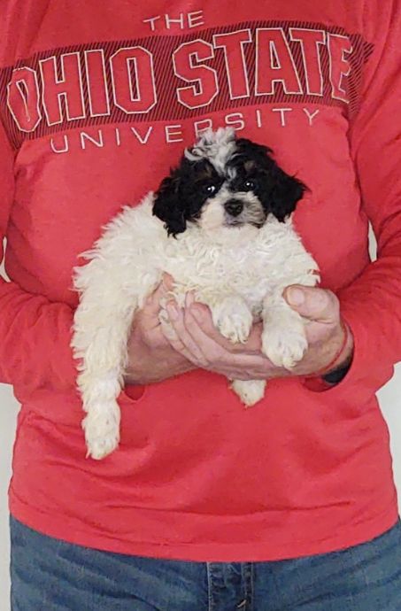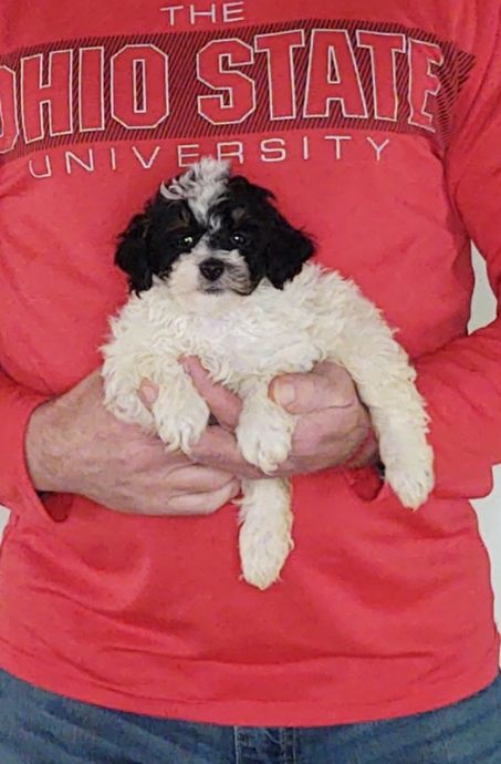 Hi, my name is Cookie. I am an 8-week-old female Mini Poodle. My mom and dad are both Mini Poodles. I was surrendered by a hobby breeder. I will weigh 15 – 20 pounds grown. I am up to date on my shots and ready to go home. We require that the new family has the dog spayed/neutered by one year of age unless their Vet suggests differently. PLEASE READ OUR FAQ PAGE before filling out the application. We want you to know about us just as much as we want to know you! To fill out an application, tap the “I’m Interested” button below my description or scroll down this page. Our adoption fee is $626. This is used to cover vet care, vaccinations, food, etc. We are a rescue group, not a shelter and we foster these animals at our home. Since we are a rescue, we can not guarantee the size or the breed of the dog. After approval, we will meet you at our Adoption Center. The address is 3616 Williams Lake Rd, New Philadelphia, Ohio 44663. Please Google this address first before you start the application process, to make sure you can make the drive to us. Remember we show by appointment ONLY.
