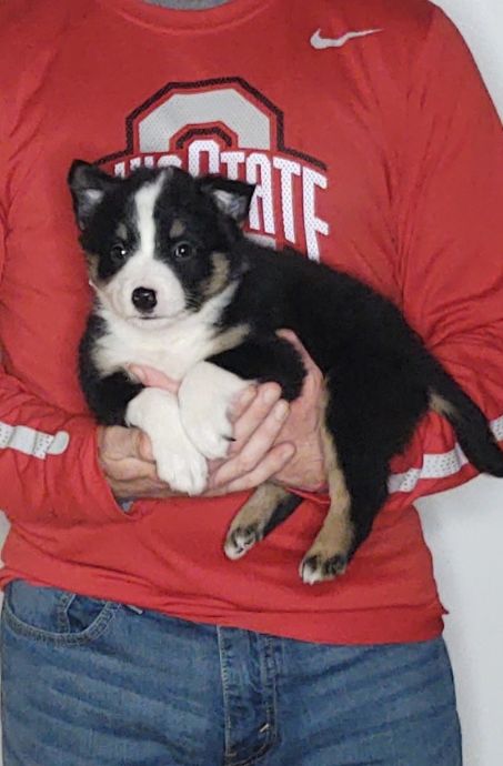 Hi, my name is Diesel. I am an 8-week-old male Border Collie and Australian Cattle Dog Mix. I am up to date on my shots and ready to go home. We require that the new family has the dog spayed/neutered by one year of age unless their Vet suggests differently. PLEASE READ OUR FAQ PAGE before filling out the application. We want you to know about us just as much as we want to know you! To fill out an application, tap the “I’m Interested” button below my description or scroll down this page. Our adoption fee is $526. This is used to cover vet care, vaccinations, food, etc. We are a rescue group, not a shelter and we foster these animals at our home. Since we are a rescue, we can not guarantee the size or the breed of the dog. After approval, we will meet you at our Adoption Center. The address is 3616 Williams Lake Rd, New Philadelphia, Ohio 44663. Please Google this address first before you start the application process, to make sure you can make the drive to us. Remember we show by appointment ONLY.
