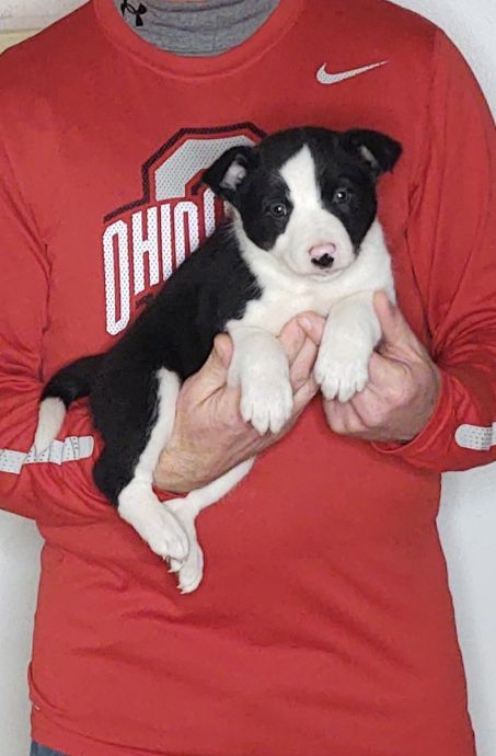 Hi, my name is Dozer. I am an 8-week-old male Border Collie and Australian Cattle Dog Mix. I am up to date on my shots and ready to go home. We require that the new family has the dog spayed/neutered by one year of age unless their Vet suggests differently. PLEASE READ OUR FAQ PAGE before filling out the application. We want you to know about us just as much as we want to know you! To fill out an application, tap the “I’m Interested” button below my description or scroll down this page. Our adoption fee is $526. This is used to cover vet care, vaccinations, food, etc. We are a rescue group, not a shelter and we foster these animals at our home. Since we are a rescue, we can not guarantee the size or the breed of the dog. After approval, we will meet you at our Adoption Center. The address is 3616 Williams Lake Rd, New Philadelphia, Ohio 44663. Please Google this address first before you start the application process, to make sure you can make the drive to us. Remember we show by appointment ONLY.