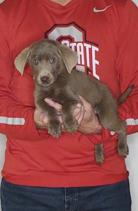 Hi, my name is Maverick. I am a 9-week-old male Silver Labrador Retriever. My mom and dad are Labrador Retrievers. I was surrendered by a hobby breeder that decided to quit breeding. I am up to date on my shots and ready to go home. We require that the new family has the dog spayed/neutered by one year of age unless their Vet suggests differently. PLEASE READ OUR FAQ PAGE before filling out the application. We want you to know about us just as much as we want to know you! To fill out an application, tap the “I’m Interested” button below my description or scroll down this page. Our adoption fee is $626. This is used to cover vet care, vaccinations, food, etc. We are a rescue group, not a shelter and we foster these animals at our home. Since we are a rescue, we can not guarantee the size or the breed of the dog. After approval, we will meet you at our Adoption Center. The address is 3616 Williams Lake Rd, New Philadelphia, Ohio 44663. Please Google this address first before you start the application process, to make sure you can make the drive to us. Remember we show by appointment ONLY.