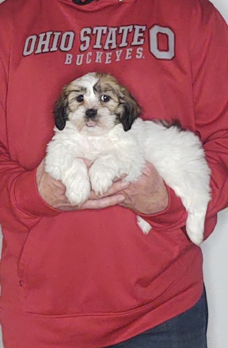 Hi, my name is Penny. I am an 8-week-old female Teddy Bear. My mom is a Bichon and my dad is a Shih-Tzu. I was surrendered from a hobby breeder. I am up to date on my shots and ready to go home. We require that the new family has the dog spayed/neutered by one year of age unless their Vet suggests differently. PLEASE READ OUR FAQ PAGE before filling out the application. We want you to know about us just as much as we want to know you! To fill out an application, tap the “I’m Interested” button below my description or scroll down this page. Our adoption fee is $626. This is used to cover vet care, vaccinations, food, etc. We are a rescue group, not a shelter and we foster these animals at our home. Since we are a rescue, we can not guarantee the size or the breed of the dog. After approval, we will meet you at our Adoption Center. The address is 3616 Williams Lake Rd, New Philadelphia, Ohio 44663. Please Google this address first before you start the application process, to make sure you can make the drive to us. Remember we show by appointment ONLY.