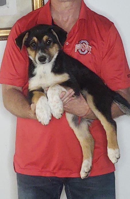 Hi, my name is Trinity. I am a 9-week-old female German Shepherd and Australian Shepherd Mix. My mom is an Australian Shepherd Mix and my dad is a German Shepherd Mix. I will weigh 68 – 84 lbs grown. I am up to date on my shots and ready to go home. We require that the new family has the dog spayed/neutered by one year of age unless their Vet suggests differently. PLEASE READ OUR FAQ PAGE before filling out the application. We want you to know about us just as much as we want to know you! To fill out an application, tap the “I’m Interested” button below my description or scroll down this page. Our adoption fee is $526. This is used to cover vet care, vaccinations, food, etc. We are a rescue group, not a shelter and we foster these animals at our home. Since we are a rescue, we can not guarantee the size or the breed of the dog. After approval, we will meet you at our Adoption Center. The address is 3616 Williams Lake Rd, New Philadelphia, Ohio 44663. Please Google this address first before you start the application process, to make sure you can make the drive to us. Remember we show by appointment ONLY.