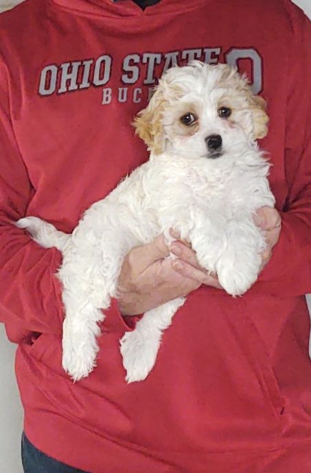 Hi, my name is Valentino. I am an 8-week-old male Cavachon. My mom is a King Charles Cavalier and my dad is a Bichon. I was surrendered from a hobby breeder. I am up to date on my shots and ready to go home. We require that the new family has the dog spayed/neutered by one year of age unless their Vet suggests differently. PLEASE READ OUR FAQ PAGE before filling out the application. We want you to know about us just as much as we want to know you! To fill out an application, tap the “I’m Interested” button below my description or scroll down this page. Our adoption fee is $626. This is used to cover vet care, vaccinations, food, etc. We are a rescue group, not a shelter and we foster these animals at our home. Since we are a rescue, we can not guarantee the size or the breed of the dog. After approval, we will meet you at our Adoption Center. The address is 3616 Williams Lake Rd, New Philadelphia, Ohio 44663. Please Google this address first before you start the application process, to make sure you can make the drive to us. Remember we show by appointment ONLY.